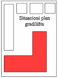 Ситуациони план градилишта је цртеж који још детаљније приказује парцелу са уцртаним објектом на жељеном месту у односу на пут и стране света. Црта се у размери 1:200.
